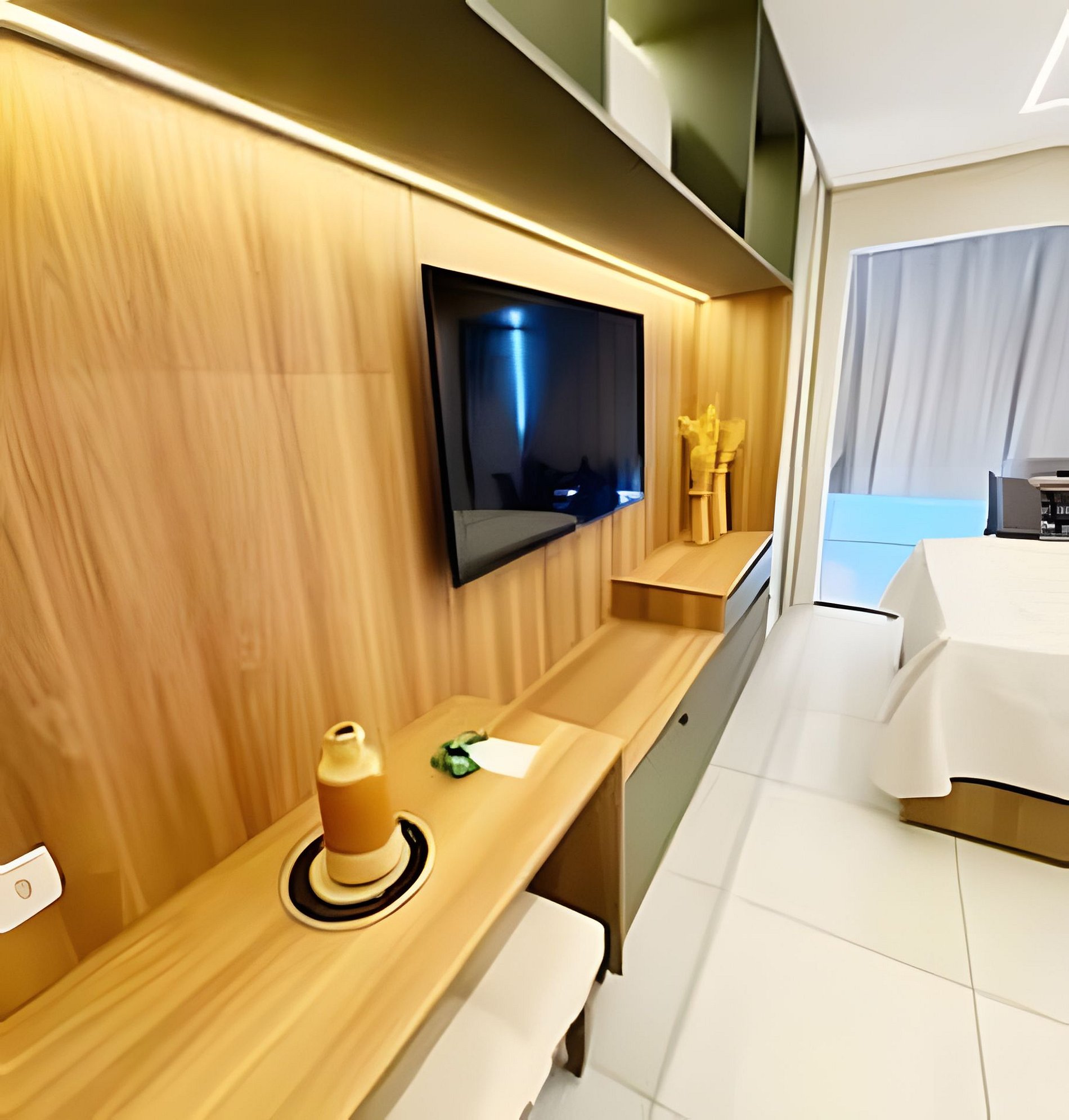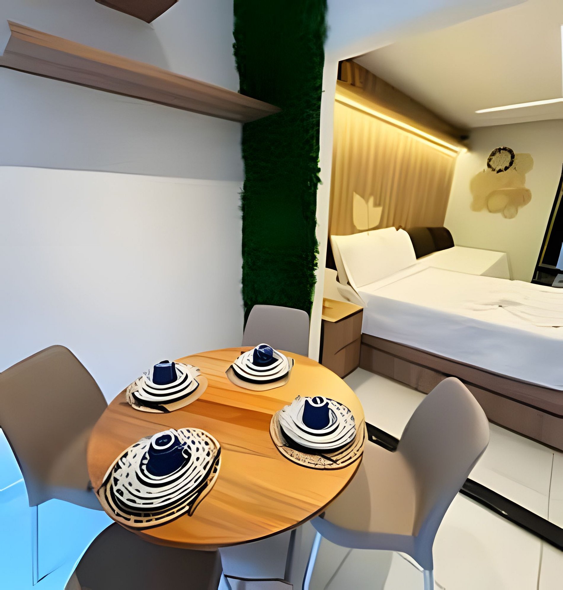 Enjoy peace and luxury in this beautifully decorated air conditioned condo. Take a private swim on our rooftop lounge with views of spectacular sunsets and a protected lagoon teeming with wildlife. Located in the centre of Porto de Galinhas, walk six minutes past shops and restaurants to the boardwalk, and eleven minutes to white sand beaches and natural pools — perfect for swimming, surfing, boating, and buggy tours.